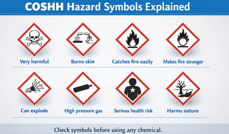 Never ignore COSHH symbols. Always check them before using any chemical. One quick check can stop serious accidents and protect your health.